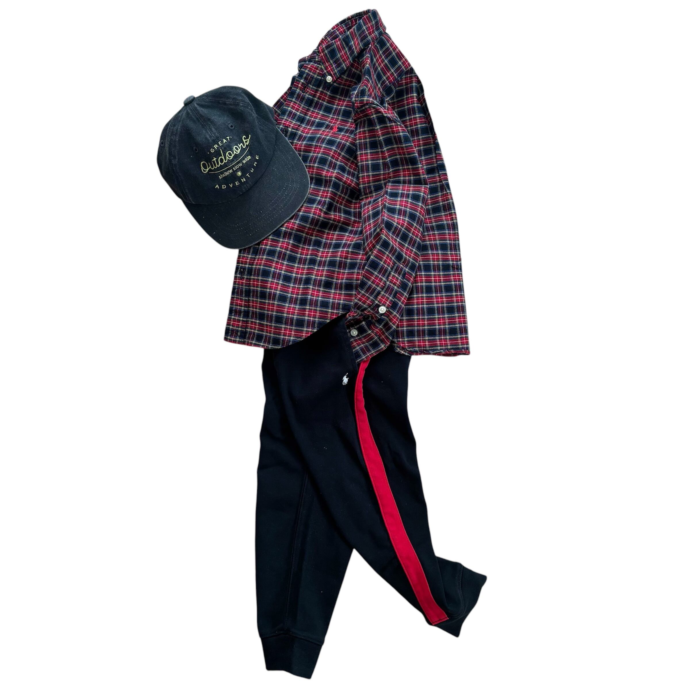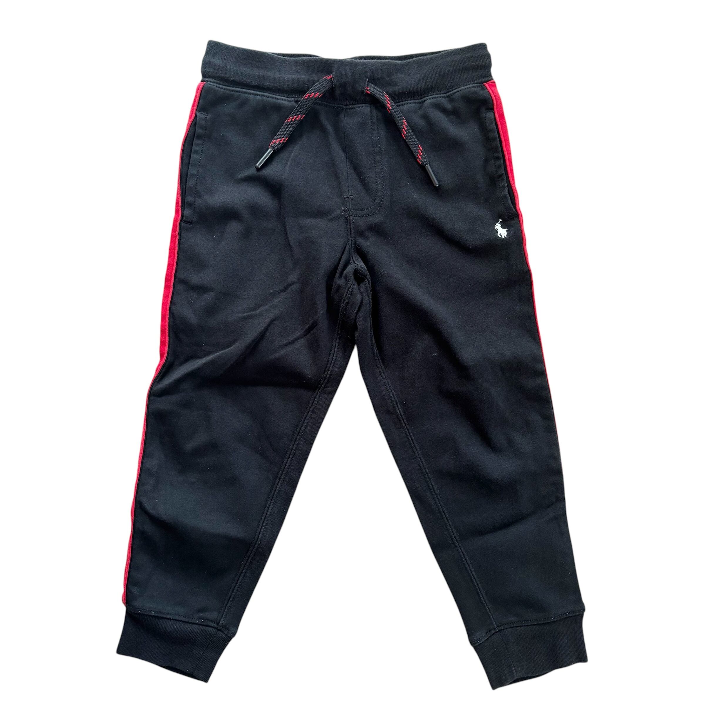 POLO Kidsのスウェットパンツ。黒地に赤ラインがかっこいい1着です。生地はサラッとしていて伸縮性あり、着心地抜群です。