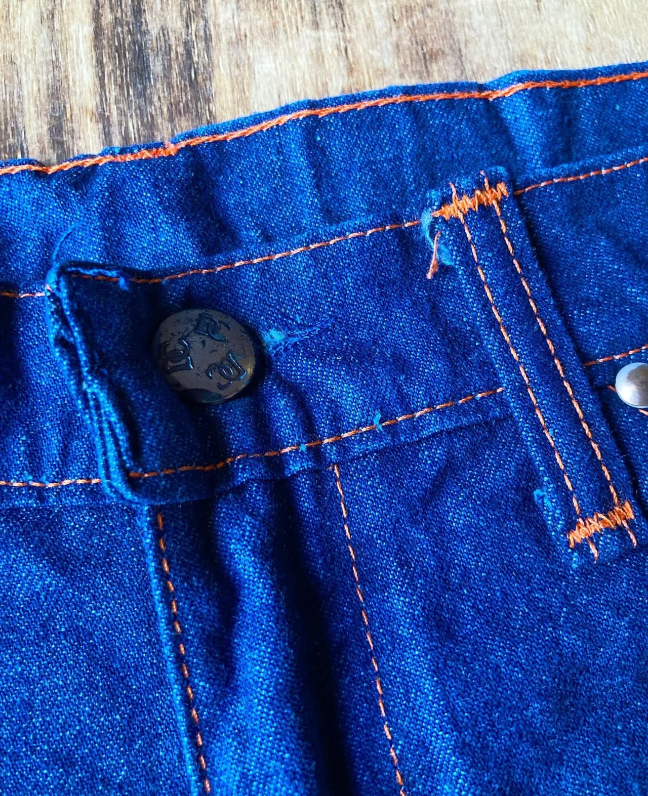 インディゴブルーにオレンジステッチが綺麗な一本。