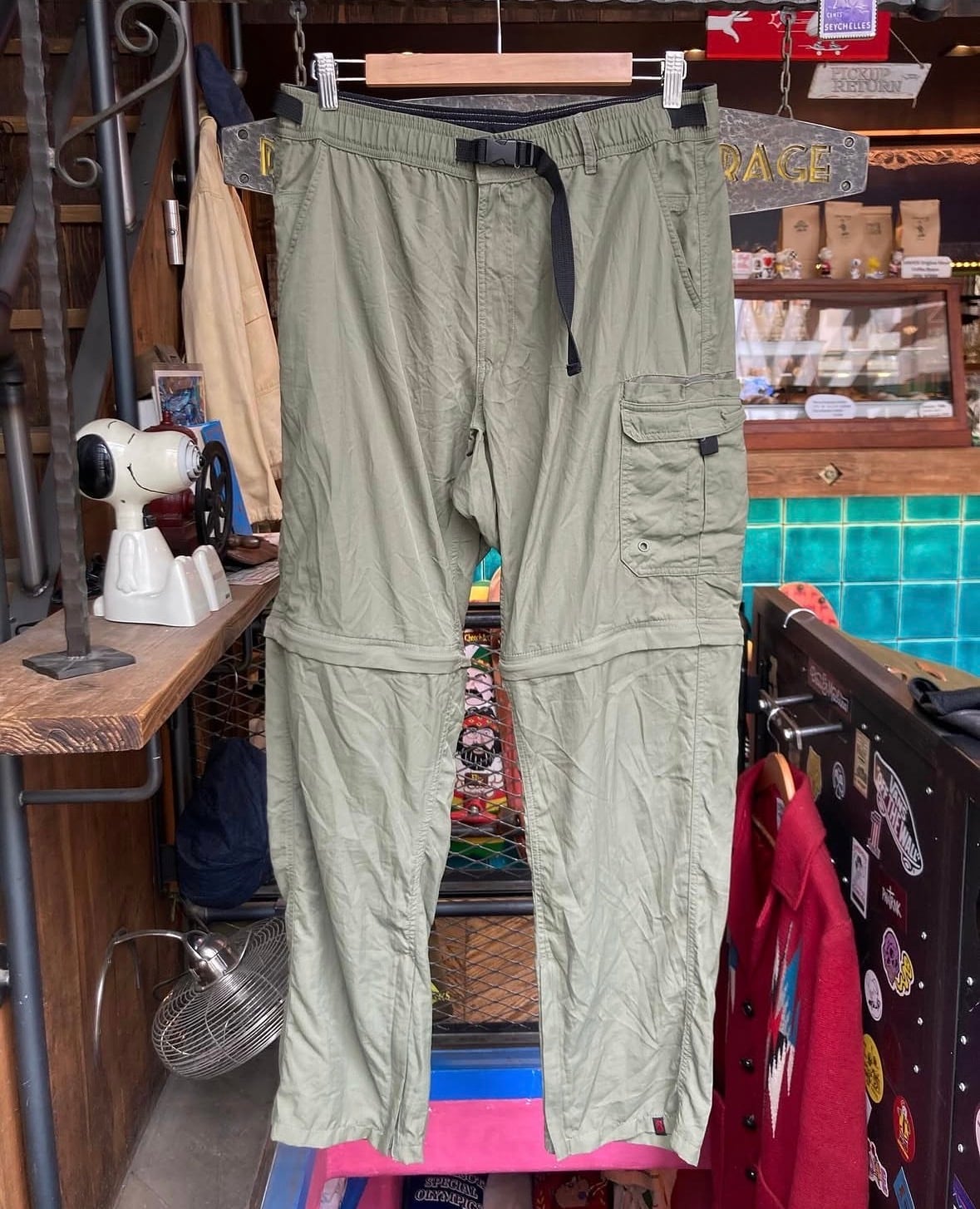 ウエストはスナップボタンとジップ仕様ですが、アジャスターベルト付きなのでぎゅっと絞れば女性の方でもお召しいただけます。