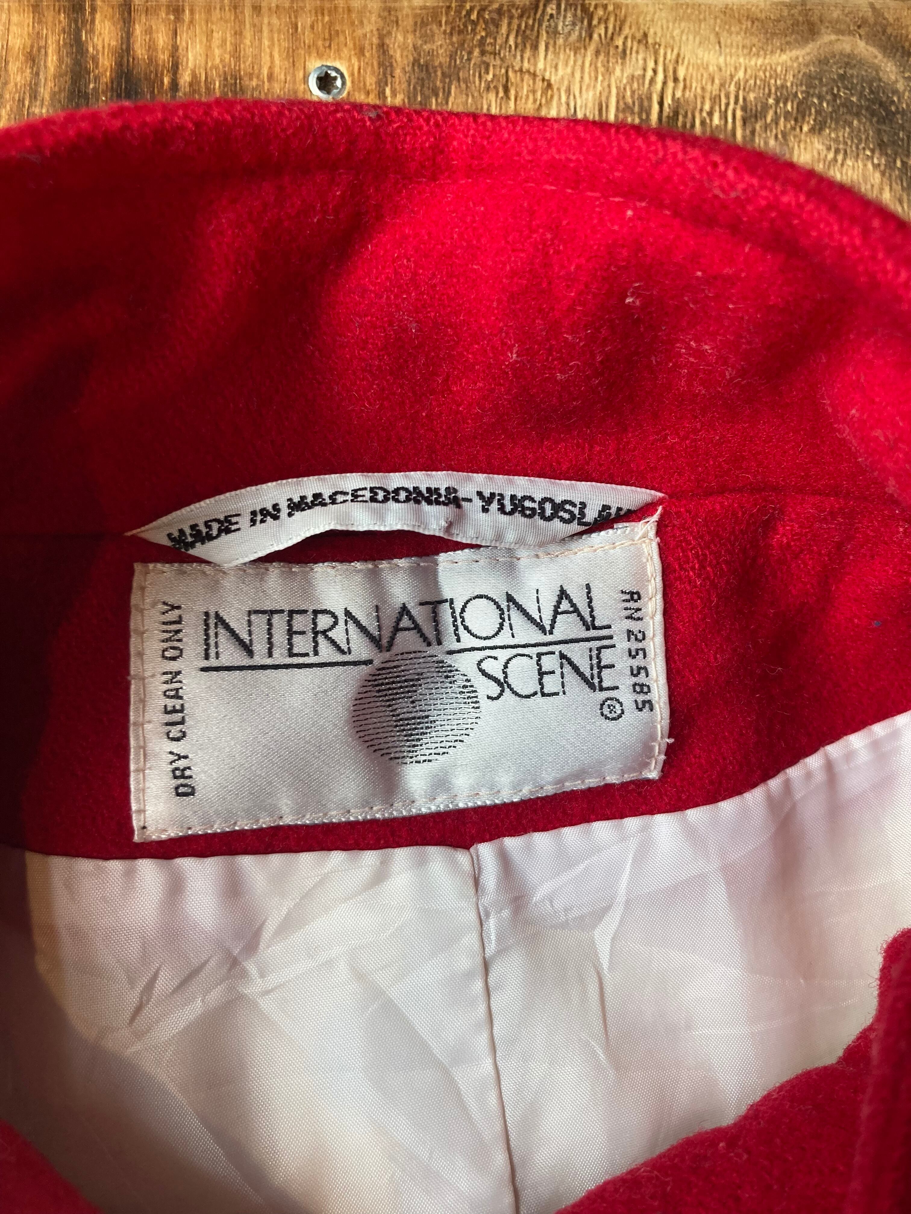 80年代、モンドリアン柄のスタンドカラーウールコート。