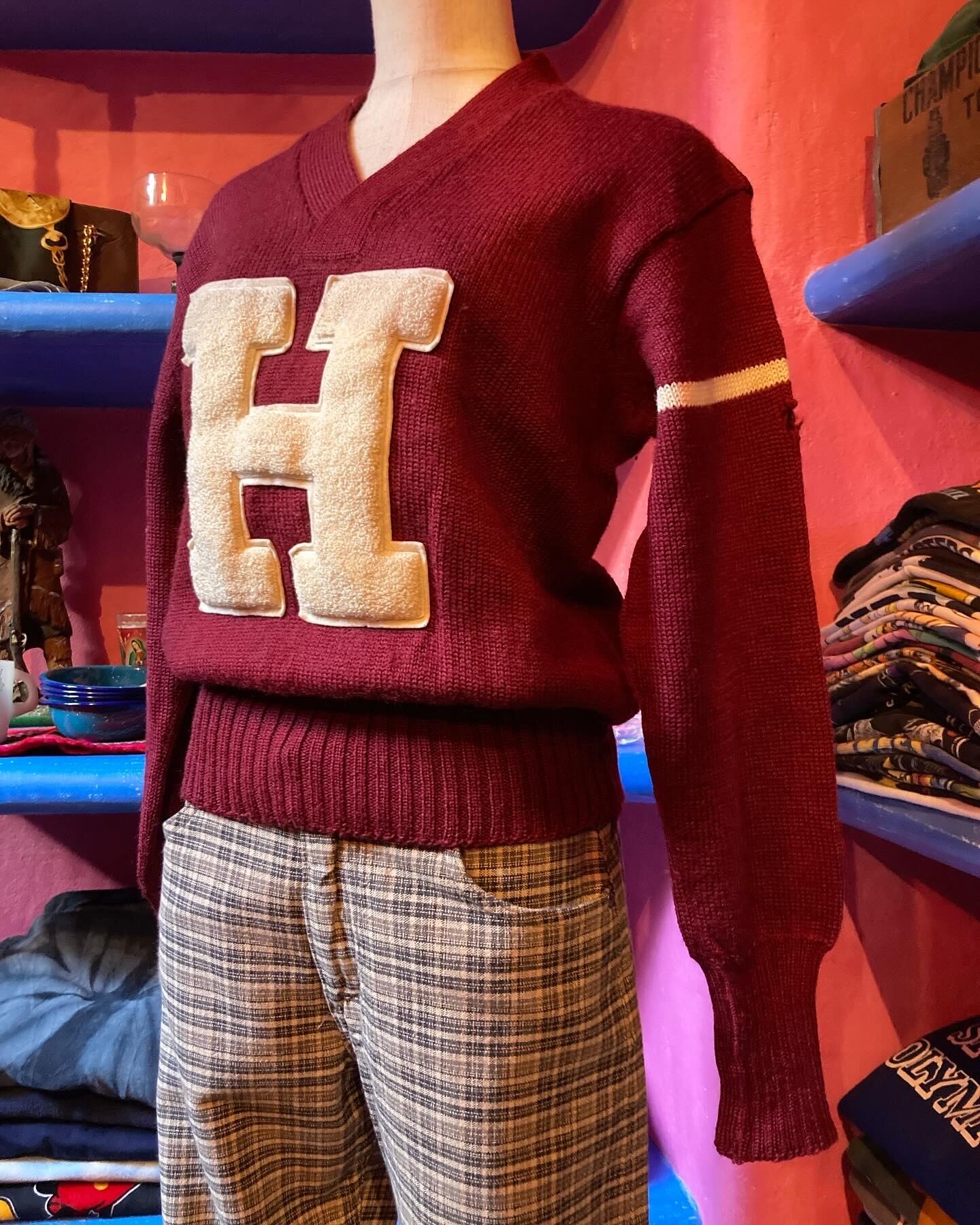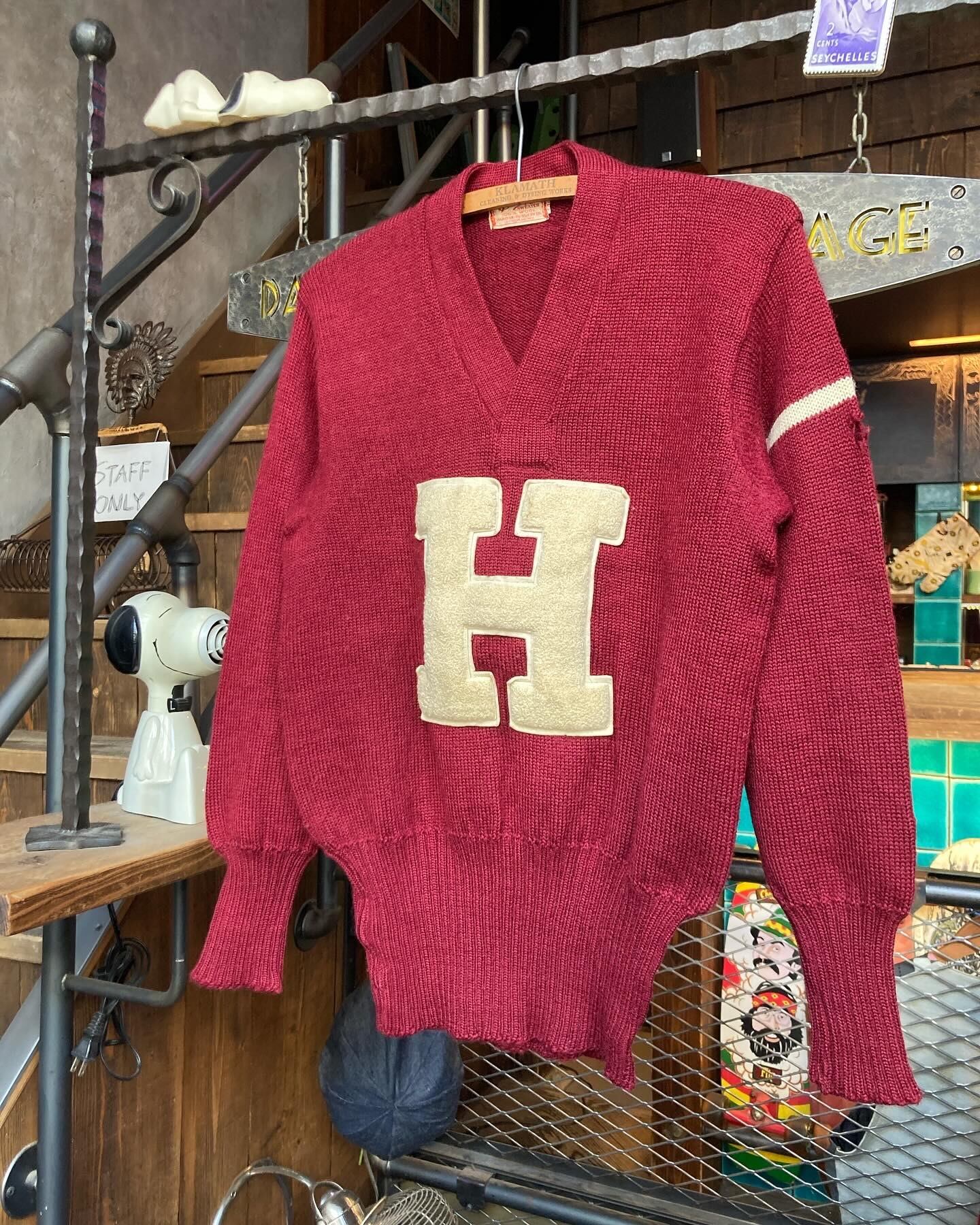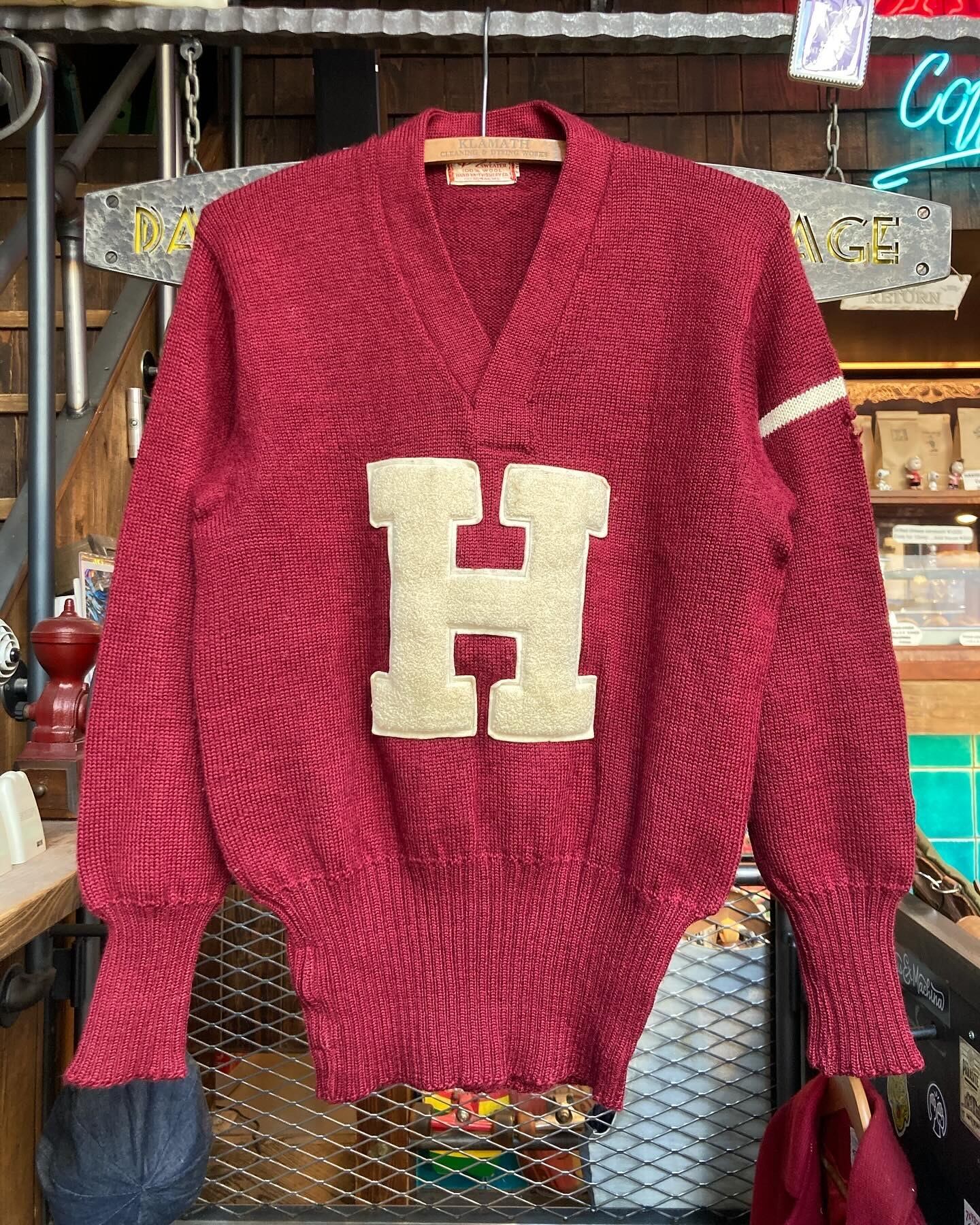 40〜50年代、バドガーのVネックレタードニットセーター。