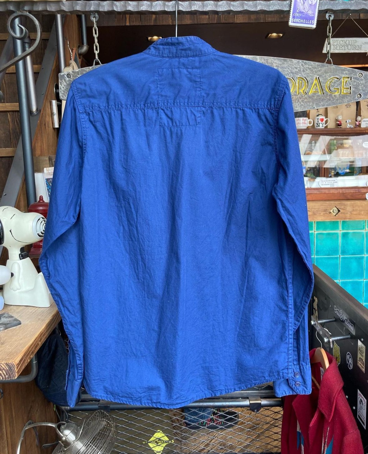 チャイナシャツのようなワークシャツのような面白いデザインで、