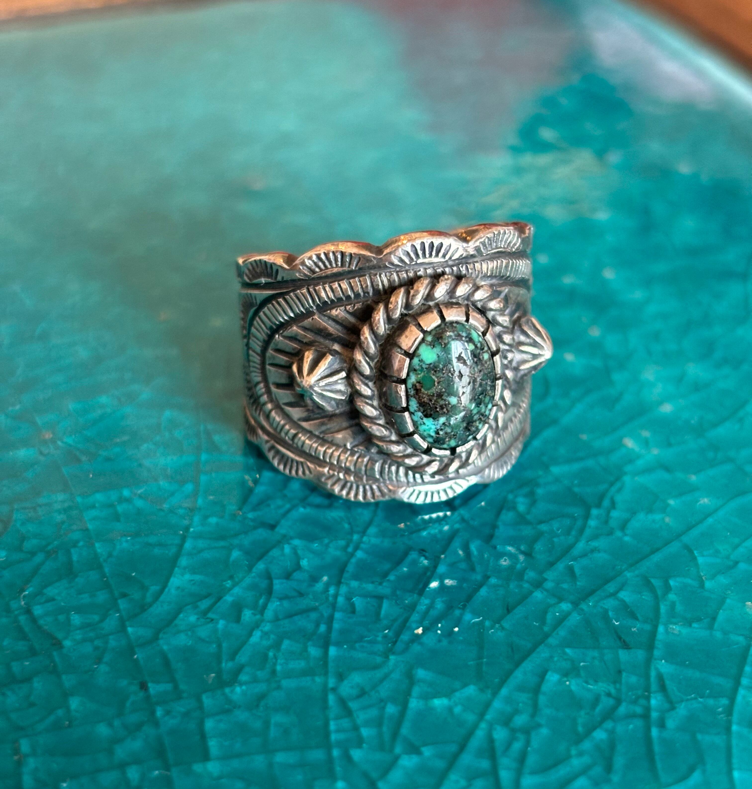 キングマン鉱山のブラックウェブ(ターコイズ)が使われたナバホ族のリング。